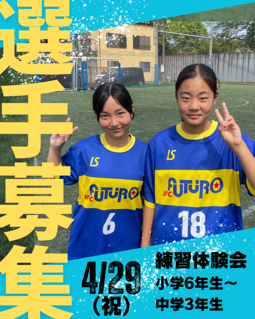 JFC FUTUROガールズU-12の選手も参加します。FUTUROらしい元気で明るい雰囲気を体験いただければ幸いです。